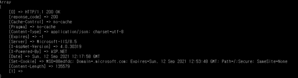 3) 쿠키설정 - 이건 Set-Cookie 로 된것이 1개만 있는것이 아니라 여러개 있습니다. 아래 결과를 보시면 1개만 나오지만파싱 할때는 배열로 만들어 줘야 합니다.